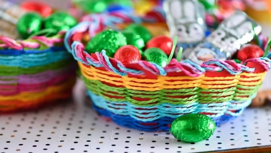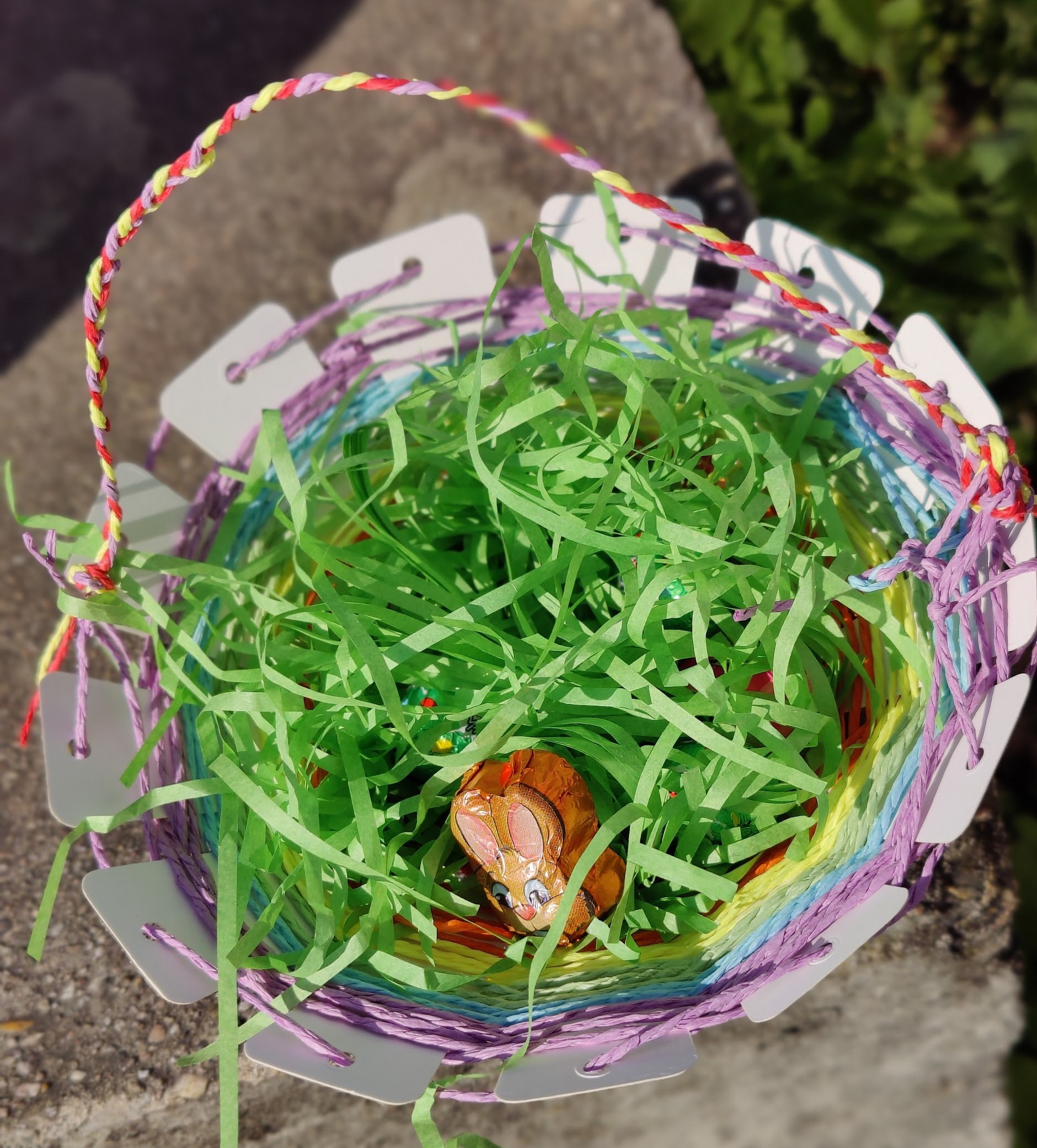 In zwei Gruppen bastelten die Kinder mit viel Begeisterung ihre eigenen Osterkörbchen. Aus bunten Seilen wurden die Körbchen sorgfältig geflochten – jedes ein echtes Unikat! Anschließend wurden sie liebevoll mit Ostergras und einer kleinen Auswahl an Süßigkeiten befüllt und durften mit nach Hause genommen werden.