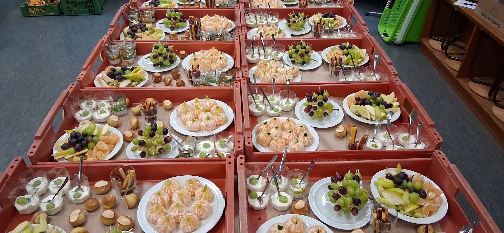 Pünktlich zur großen Pause konnten die Klassen ihr Gesundes Frühstück zum gemeinsamen Schlemmen im Klassenzimmer in der Schulküche abholen.