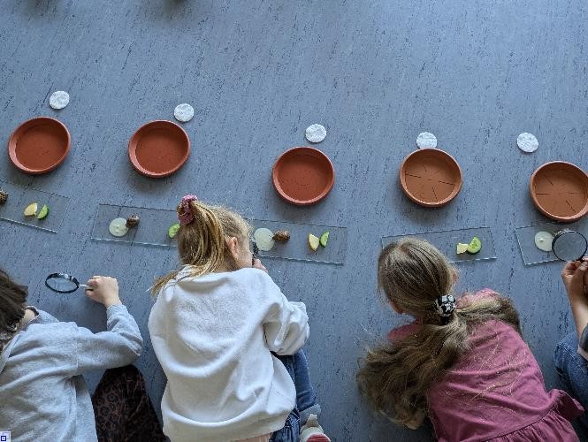 Im „Schneckenpool“ durften die Tiere baden und die Kinder konnten ihr Häuschen mit einem Wattepad putzen. Obwohl das ein oder andere Kind vorher skeptisch war, verschwand das Ekelgefühl sehr schnell. Die Schnecken wurden berührt, gestreichelt oder sich auf die Hand gesetzt.